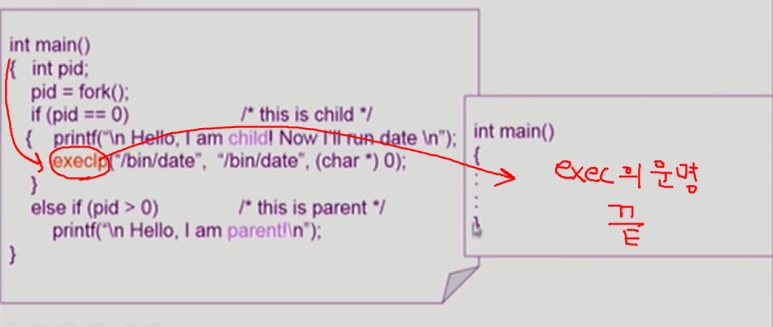 - 부모 프로세스와는 다른 자식프로세스의 프로그램을 실행해야할 경우 복제된 주소공간 위에 새로운 프로그램의 주소공간을 덮어씌어 실행한다. (Exec)