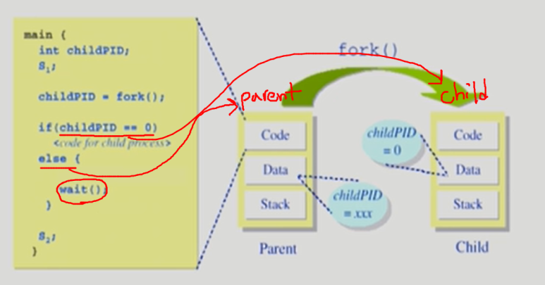• 부모프로세스의 주소공간 내용을 그대로 자식 프로세스의 주소공간으로 복사한다. (Fork)
