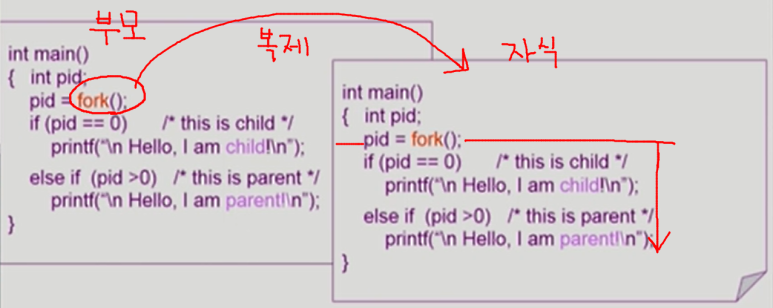 fork이후 입니다(이유는 program counter를 복제해서 실행하기 때문입니다..!)