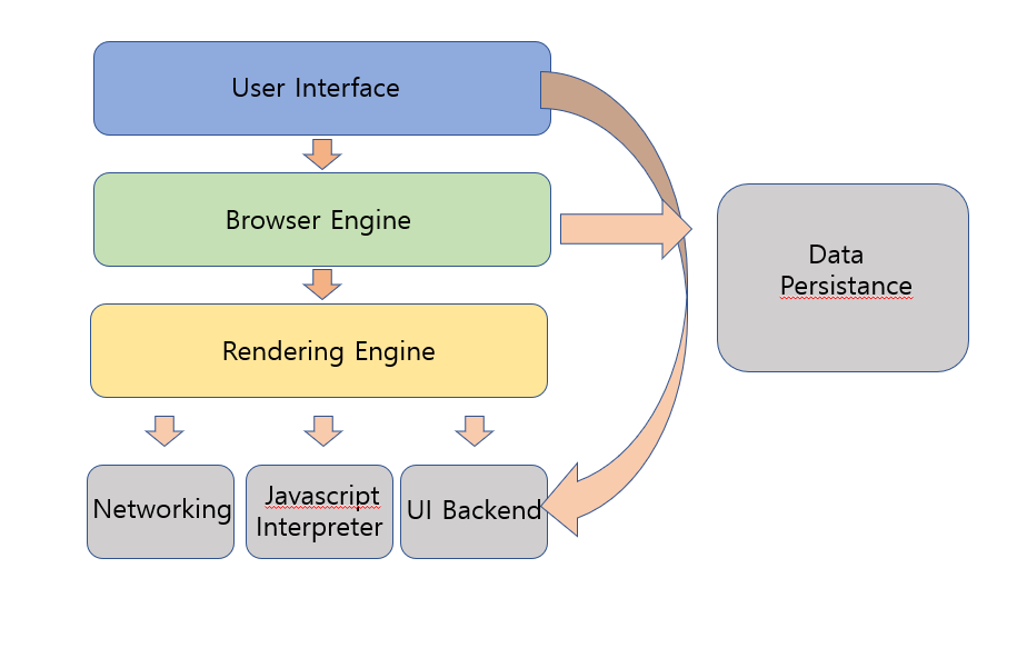 유저 인터페이스와 렌더링 엔진을 연결하는 브라우저 엔진