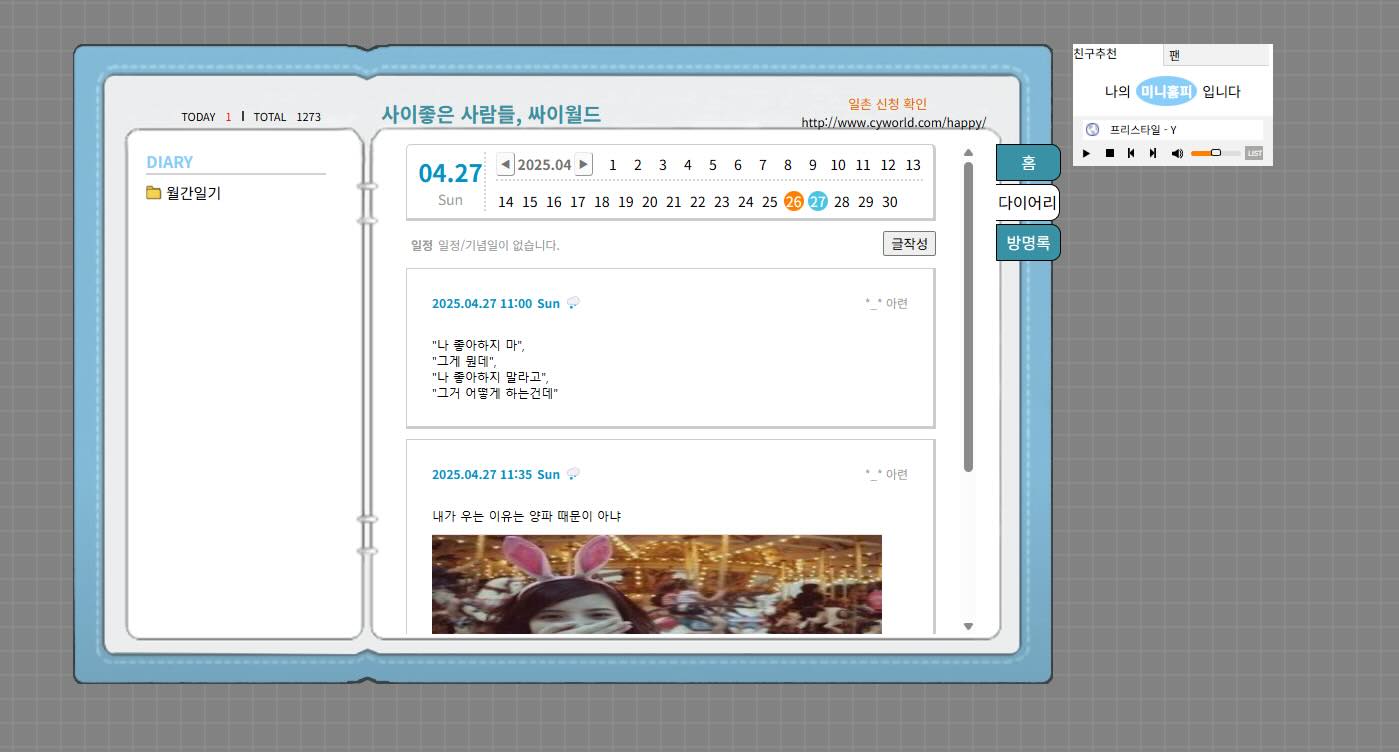 | 추억을 회상하며 만든 싸이월드 배포 완료 (0) | 2025.04.13 |