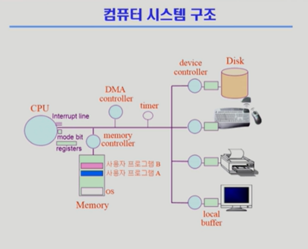 컴퓨터 외부장치 : I/O device 입출력 장치(디스크,키보드,모니터,네트워크 장치)