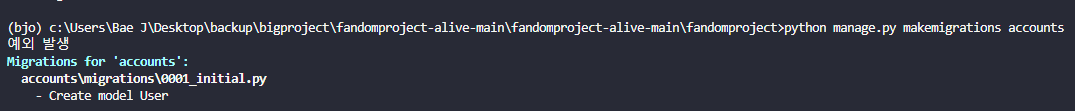 개인 프로젝트였기에 DB도 삭제해보고 이미 Migration된 폴더도 지우고 다시 해봤지만 해결할 수 없었고.. makemigrations.py에서 발생하는 에러의 뿌리를 찾으려고 해당 코드에 출력로그를 찍어보았습니다.